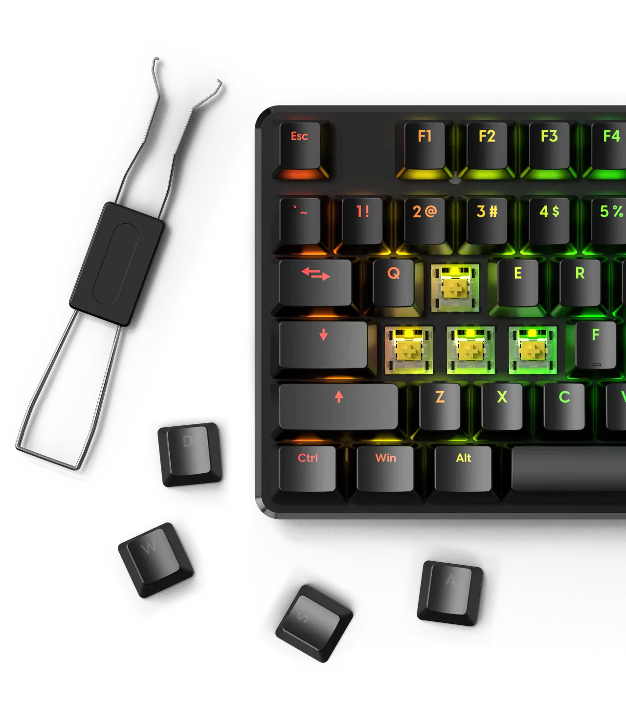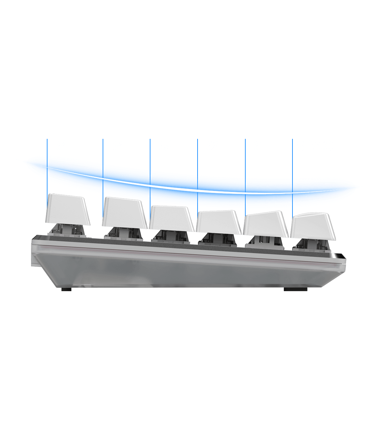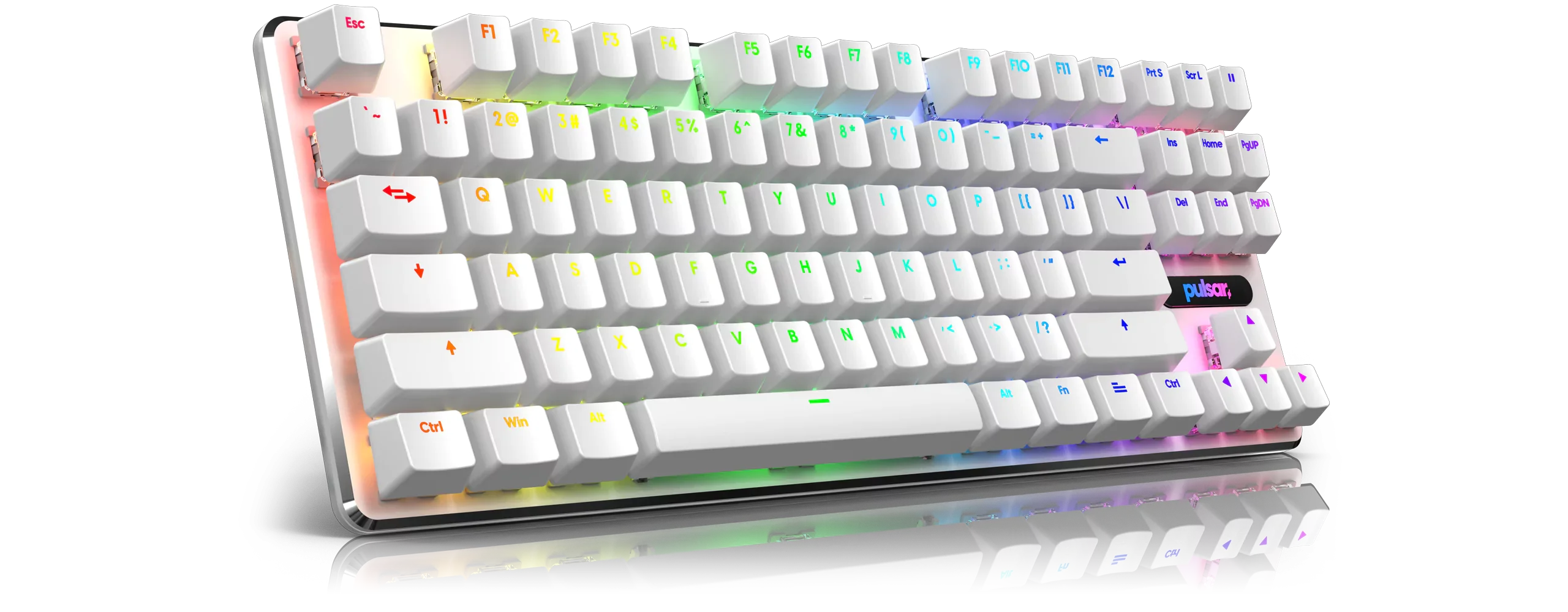 The keycaps can shine through legends. The full key set is compatible with Pulsar keyboards and other mechanical keyboards using Cherry MX style switches.