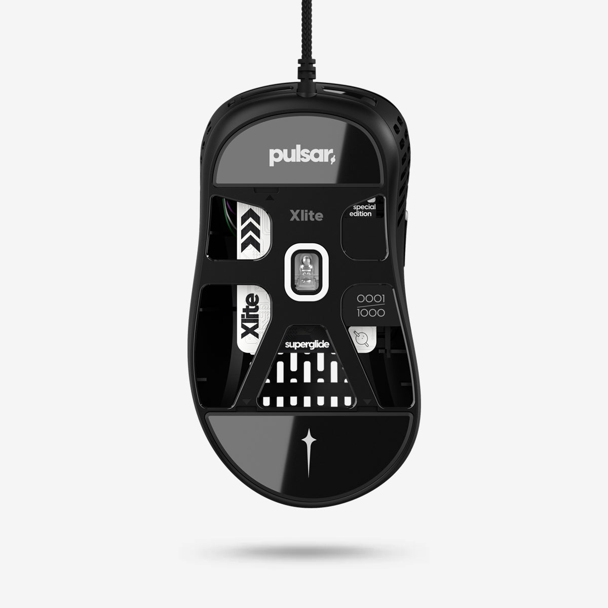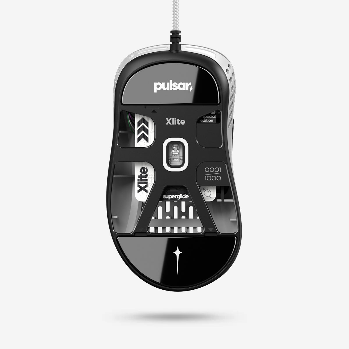 The Xlite Superglide is high-performance ergonomic gaming mouse equipped with ultra-fast and ultra-smooth tempered glass skates. It features the PAW3370 sensor with a 20,000Dpi sensitivity, 400IPS tracking speed, and 50G acceleration. With a 1000Hz polling rate and an ultra-flexible paracord cable, it offers top-tier gaming precision. Just 1000 units of this exceptional mouse are available worldwide.