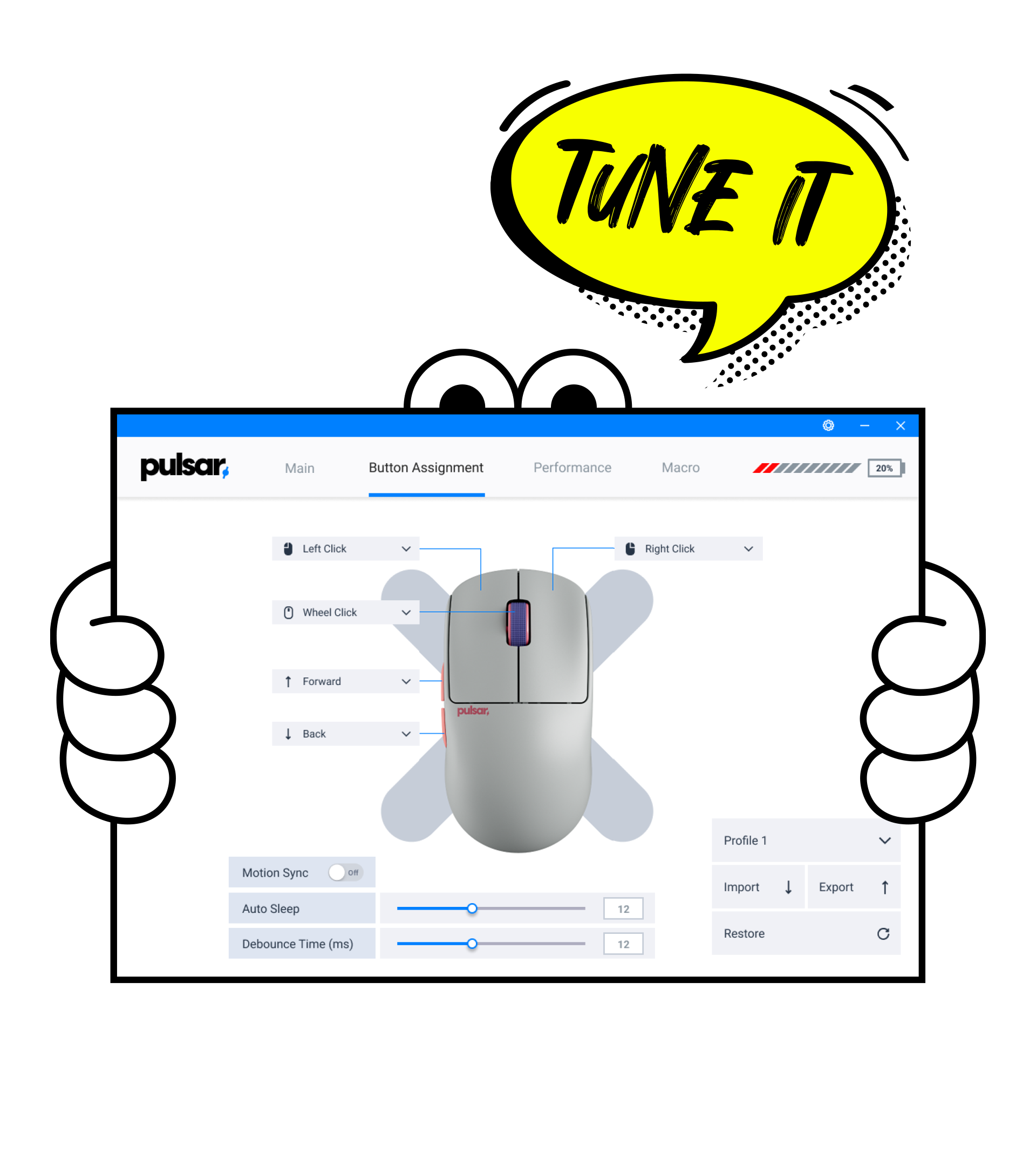 With the X2 CrazyLight's dedicated software, you can adjust DPI, polling rate, and button functions with ease. It’s a straightforward tool to help you optimize your mouse for smooth and responsive gameplay.
